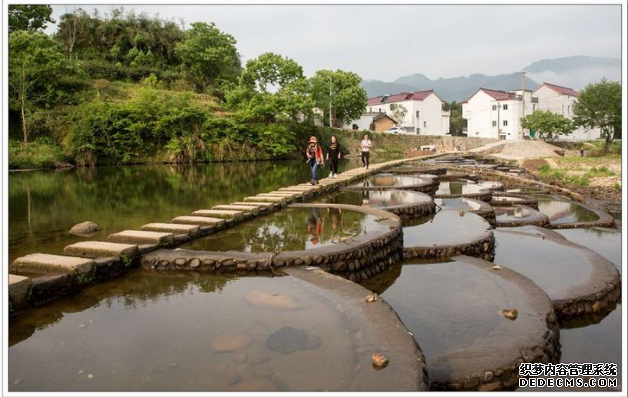 首先,来到半月形堰口,身旁的一汪碧潭似乎浅了不少,溪水留在堰口凹陷处,象一片片平整的玻璃镜面,将天光云影都搅入它的怀中。没有了想象中丝丝亮亮的小瀑布。此时心里嘀咕着,哎呀,来的不是时候。踏着一块块排列整齐的脚踏石带着思绪步入那个神秘莫测的峡谷中!