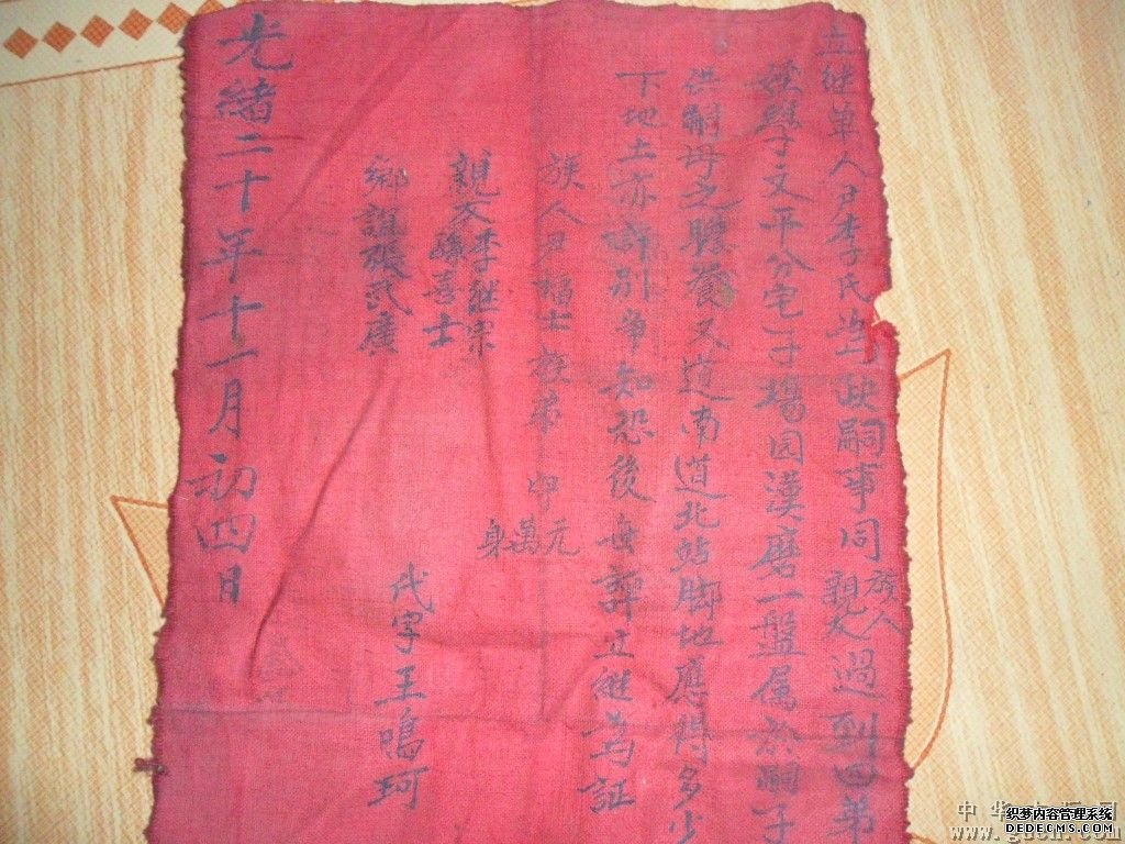 过继文书一般写于红纸或红布之上,表示喜庆,有增人添丁之意。