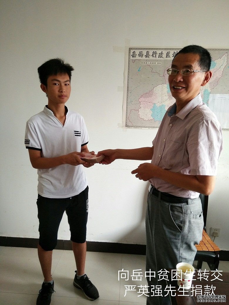 广东惠州强新实业有限公司总经理严英强先生经县政协文史委主任陈正新介绍,得知岳中高二实验班一学生学习成绩优异,但家庭十分困难,该生暑假打工挣学费的情况后,甚为怜惜,当即拿出2万元请陈正新主任转交该学生,作为学习和生活费用。并表示该生如果考上清华、北大等一流大学,他还全额负担其大学费用。 该生接到捐款后,非常感动,表示一定要好好学习,将来做一个有用的人,更好地回报社会,以感谢严总等社会爱心人士的关爱之心、救助之恩。 |